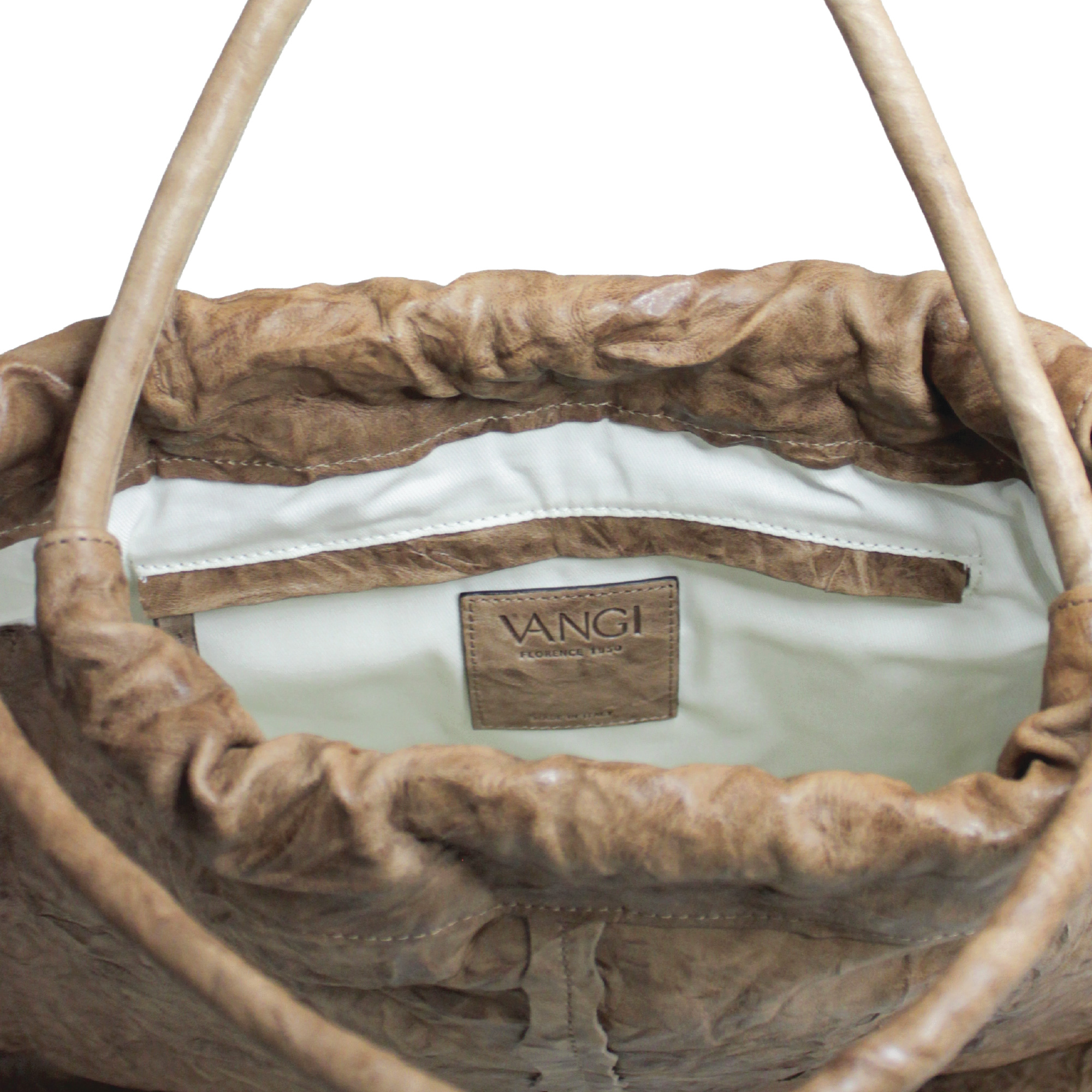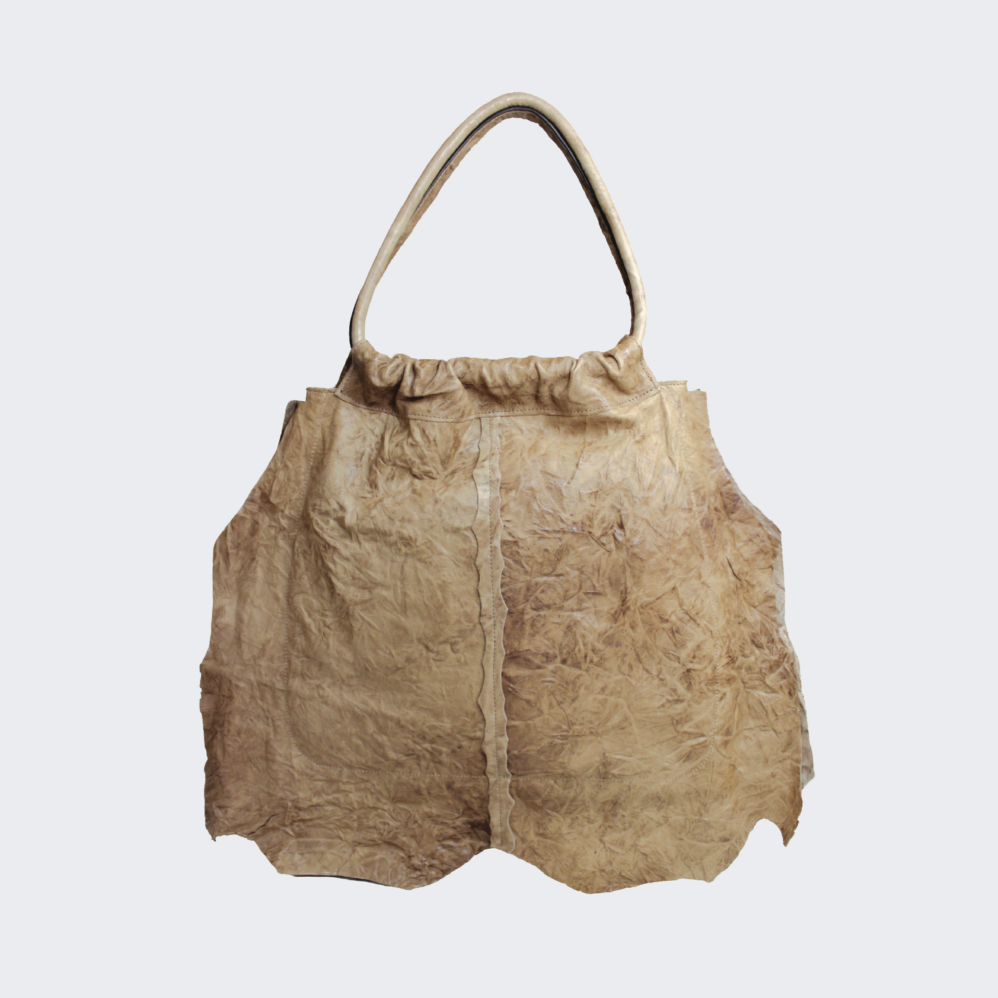 Cora borsa in pelle stroppiciata a due manici da portare a spalla dal design unico e originale. L’accessorio ideale per chi ama distenguersi con stile. Dimensioni 59 x 50 x 5 cm