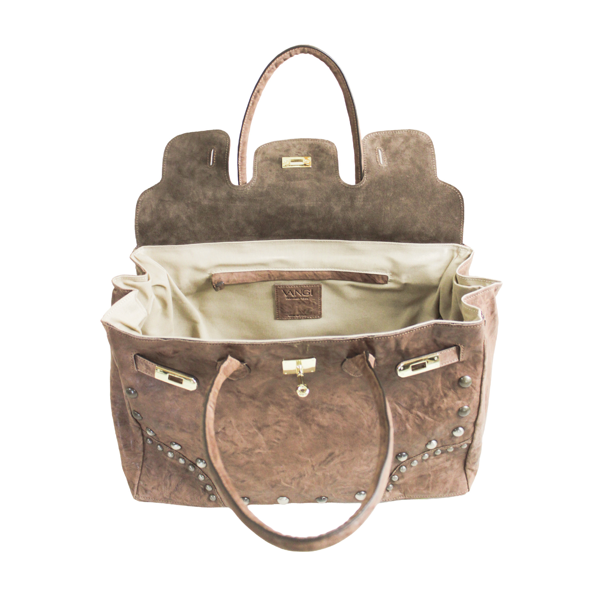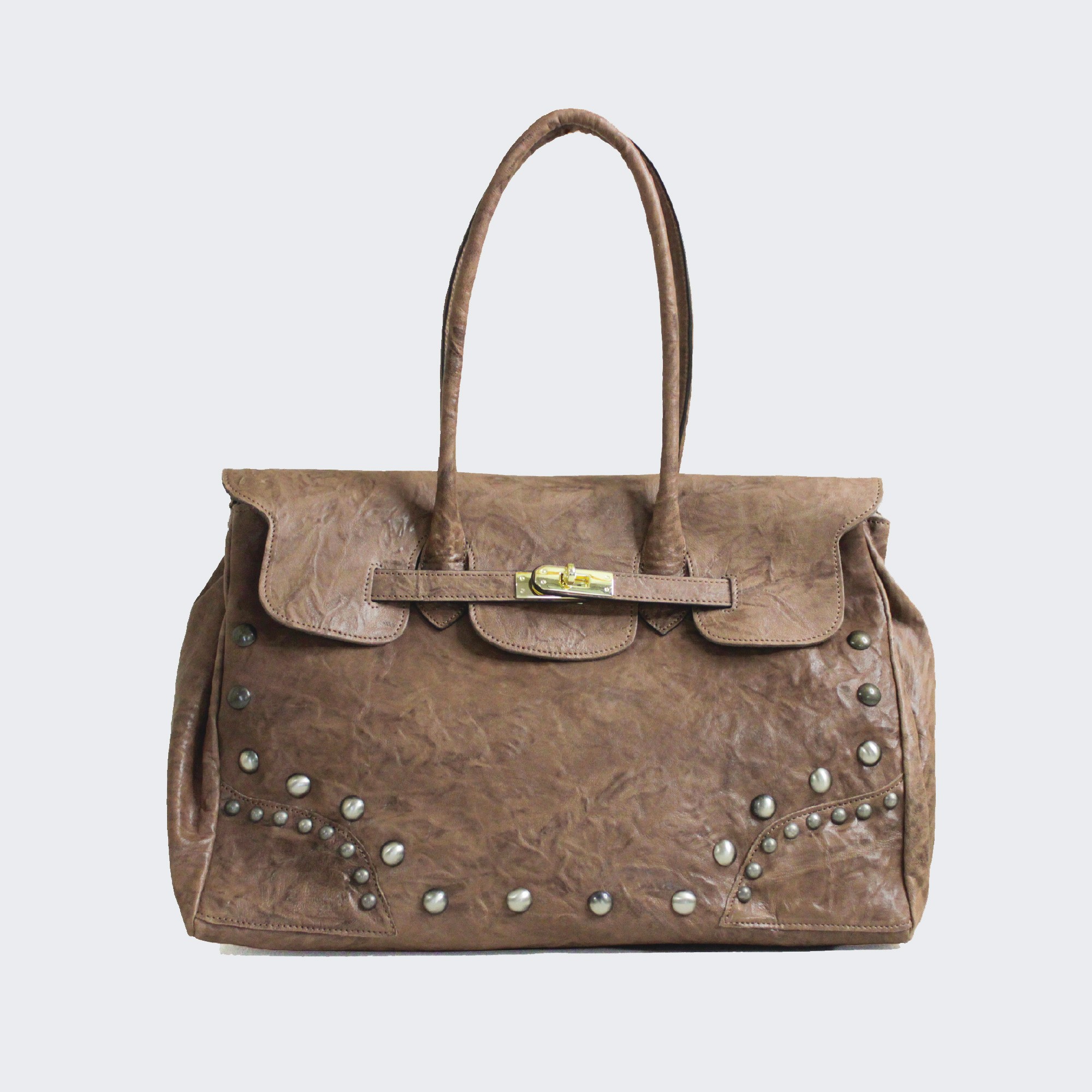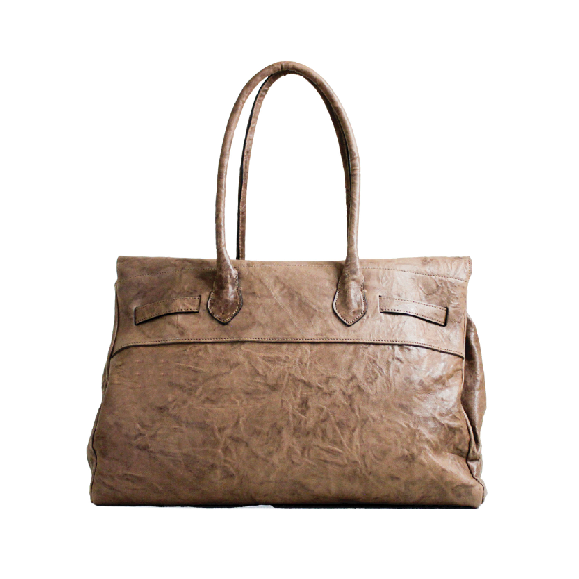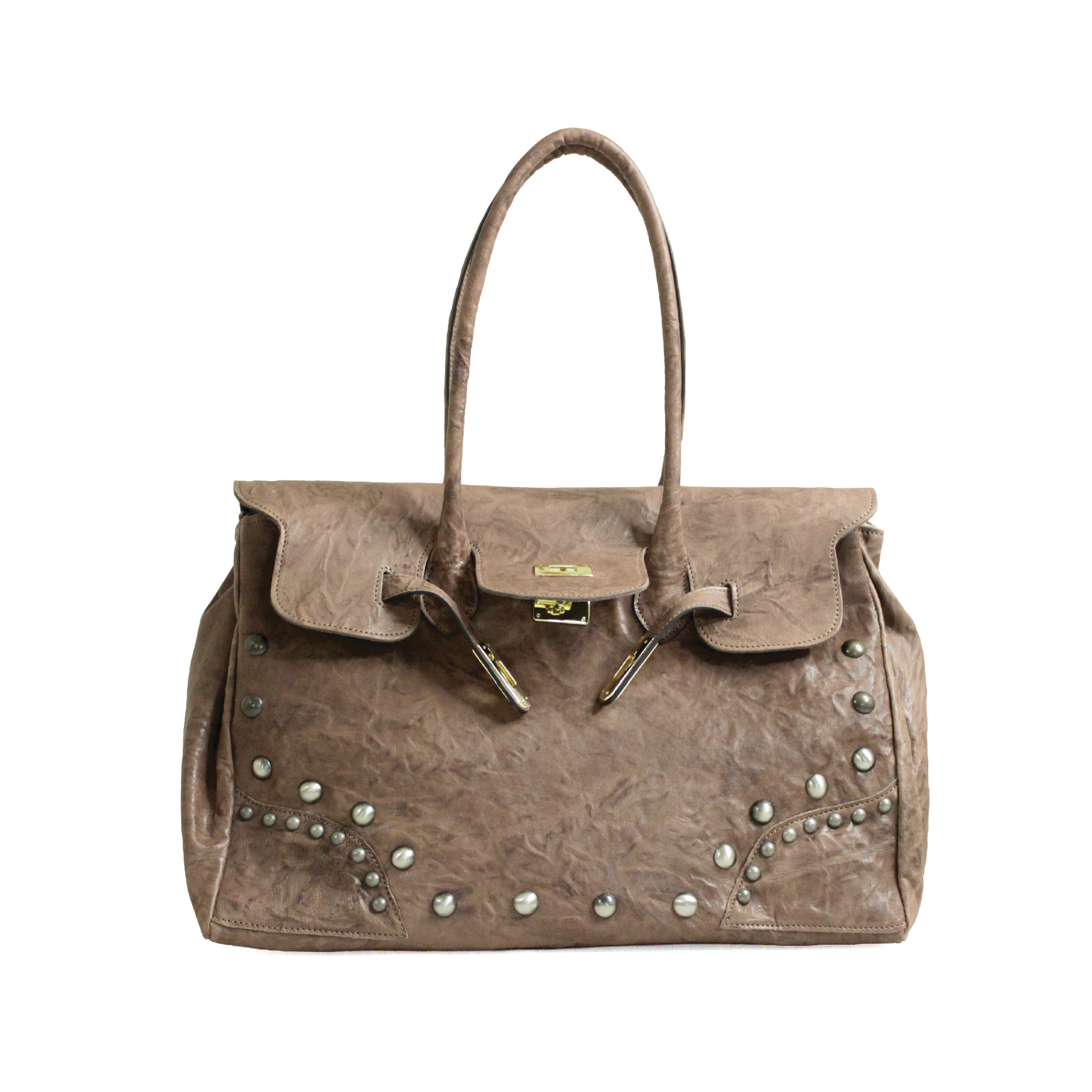 Deva borsa capiente e sofisticata a due manici per portarla a spalla. Realizzata in pelle stropicciata che le dona carattere e personalità. La chiusura in metallo aggiunge un dettaglio luminoso. Dimensioni 40 x 30 x 20 cm