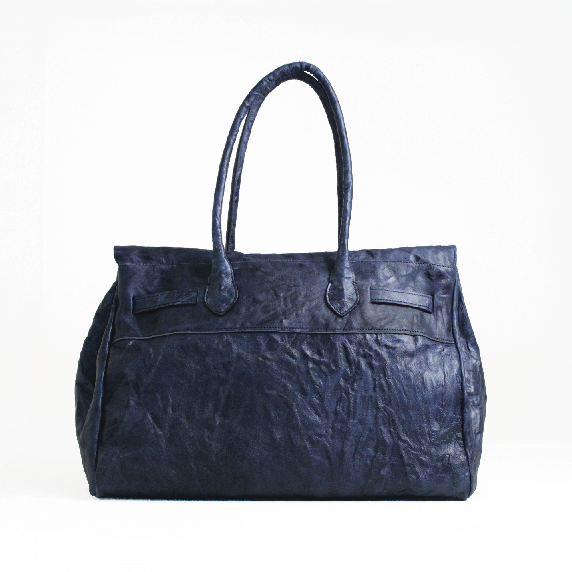 Deva borsa capiente e sofisticata a due manici per portarla a spalla. Realizzata in pelle stropicciata che le dona carattere e personalità. La chiusura in metallo aggiunge un dettaglio luminoso. Dimensioni 40 x 30 x 20 cm