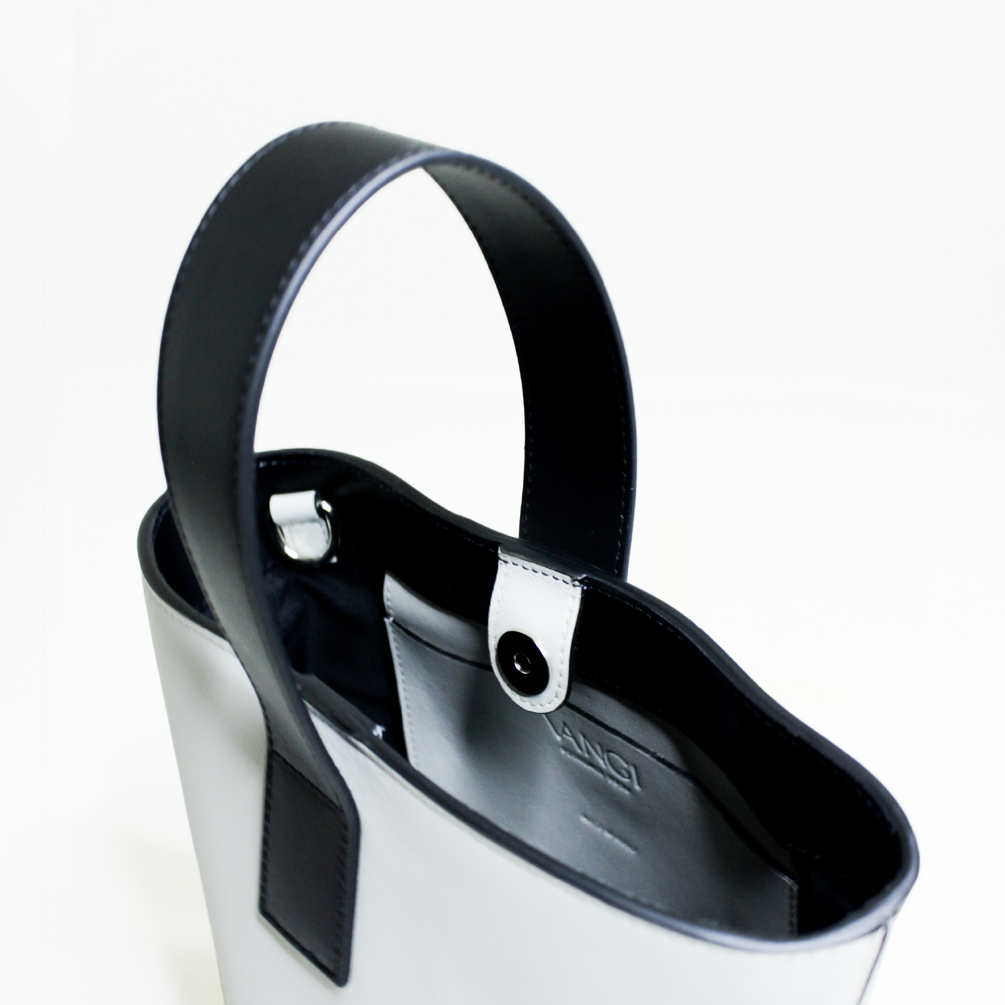 Eleonora semplice ed elegante. Realizzta in pelle liscia. Caratterizzata da una pratica chiusura a calamita arricchita dal manico a mano e dotata di una tracolla regolabile e removibile in tessuto. Dimensioni: 23 x 27 x 18 cm