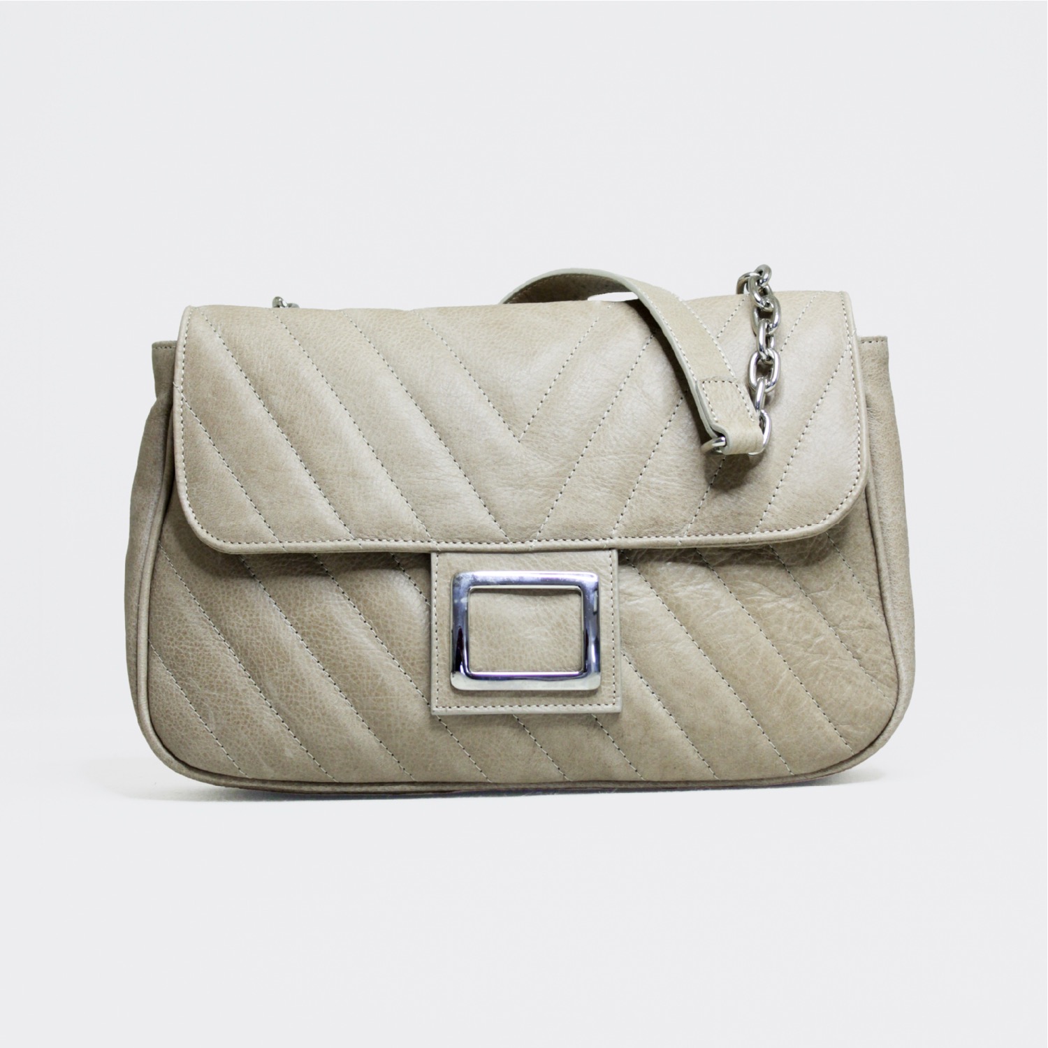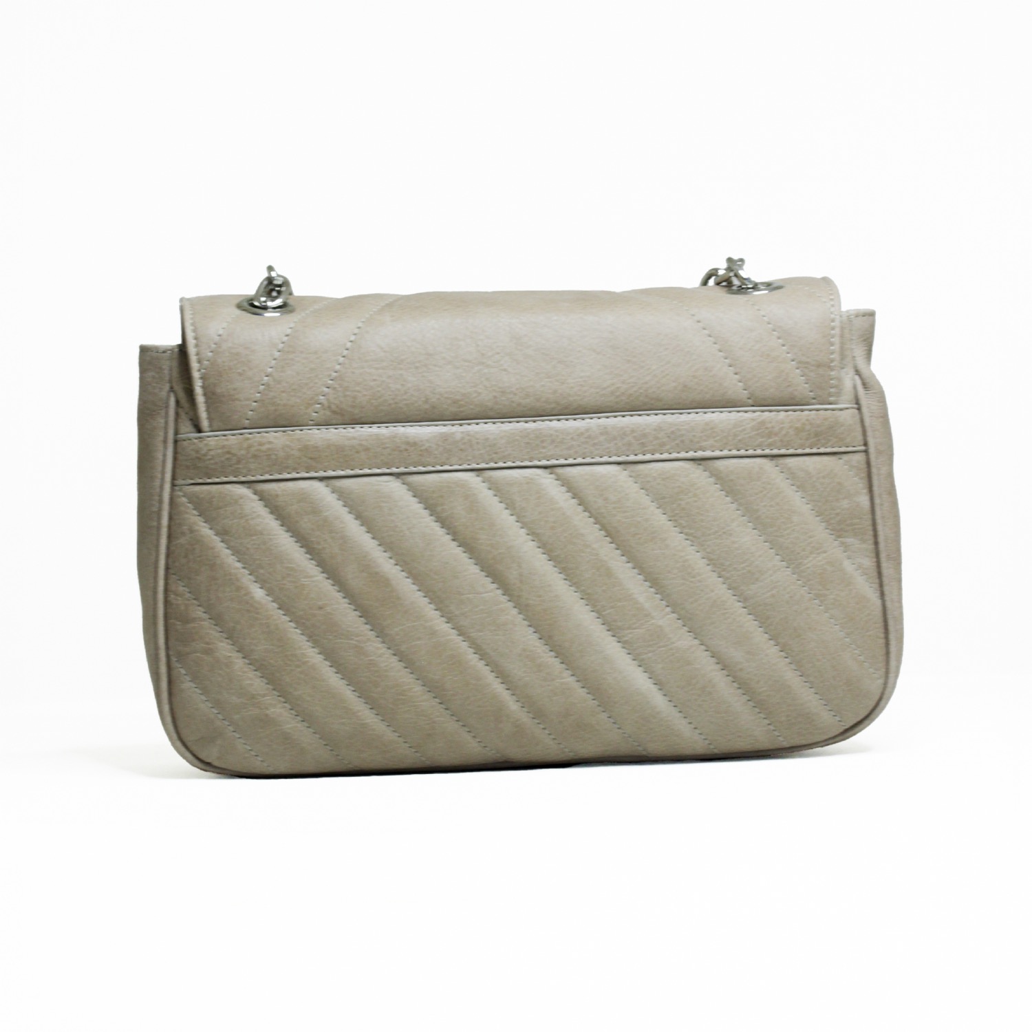 Ellie clutch elegante e rafinata. Realizzata in pelle liscia con inpunture trapuntate. Completa la borsa una tracolla a spalla in catena e pelle. Dimensioni: 33 x 21 x 8 cm
