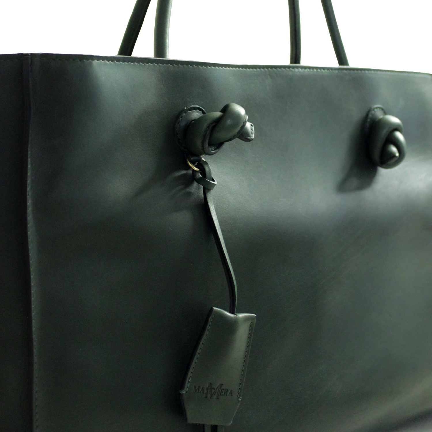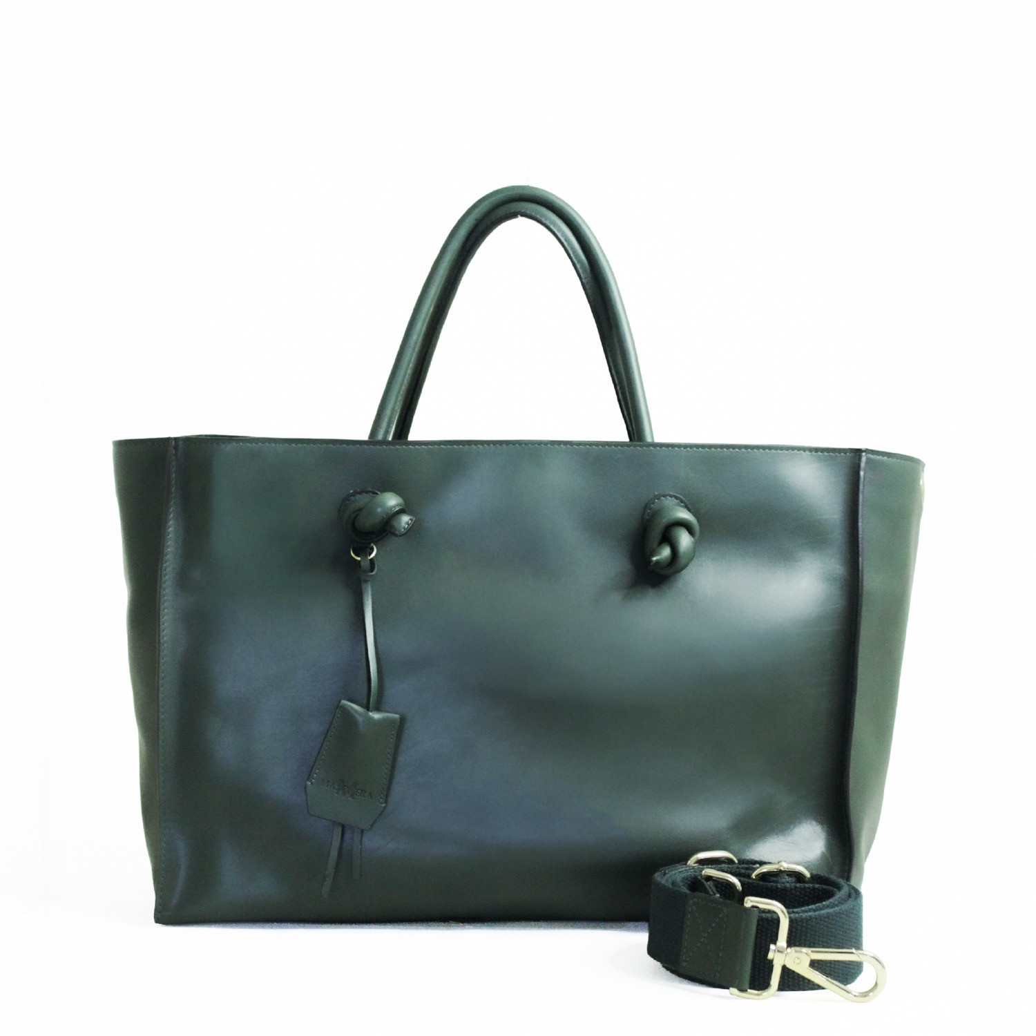 Ivy by Maschera è realizzata in pelle liscia. Arricchiscono il design i manici a spalla con nodo. Dotata di una chiusura superiore con zip e una tracolla in tessuto regolabile per utilizzo crossbody. Dimensioni: 40 x 28 x 16 cm
