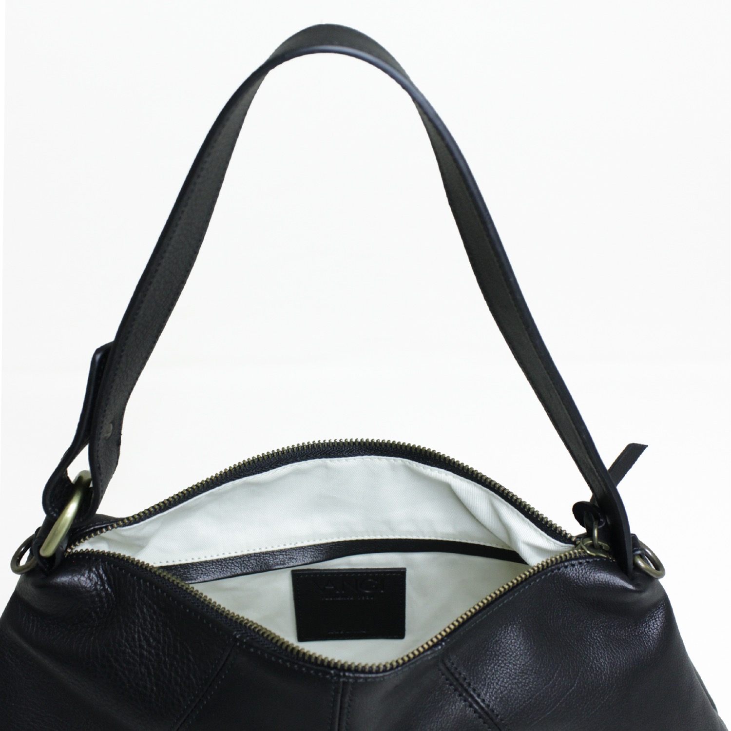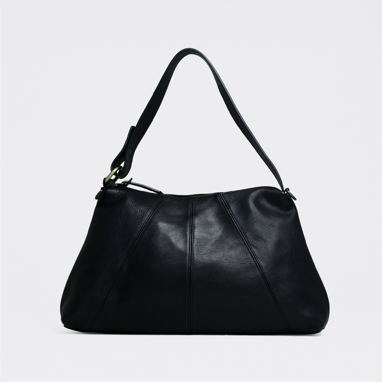 Mia elegante e grintosa. Caratterizzata da una forma geometrica che la rende cool. Realizzata in pelle liscia e caratterizzata da una pratica chiusura a zip. Dotata di un manico arricchito da gemello e da una tracolla extra per portarla a spalla. Dimensioni: 40 x 23 x 13 cm