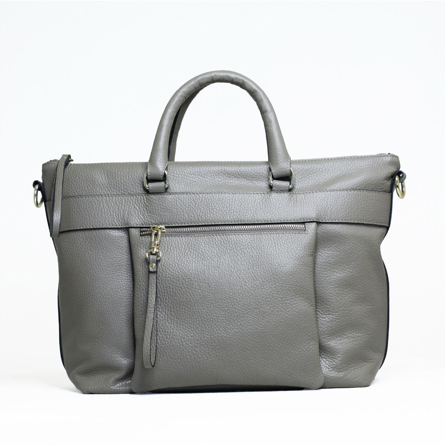 Nina by Maschera è realizzata in pelle martellata. Caratterizzata da una doppia portabilità a mano e a spalla. Arricchita da una tasca esterna e dotata di una chiusura superiore con zip. Dimensioni: 43 x 29 x 15 cm