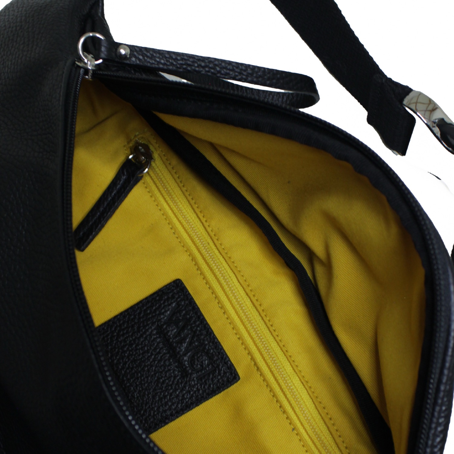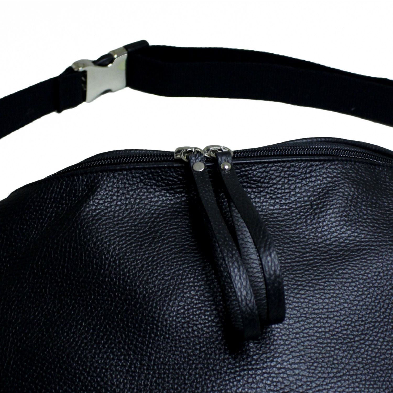 Sole il marsupio realizzato in morbida pelle martellata. Ideale per chi desidera un acessorio compatto e funzionale. Dotato da uno scomparto con zip, una tasca all’interno ed una tracolla in tessuto per portarla a spalla. Dimensioni: 22 x 40 x 10 cm